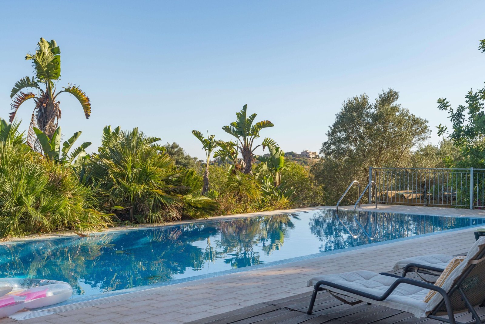 À entrada da casa, encontra-se um pátio interior convidativo. Do lado da piscina infinita, outra varanda com um canto de fonte, ideal para colocar os seus peixes. O grande jardim, planeado para diversas atividades, inclui espaços dedicados tanto para leitura como para churrascos.